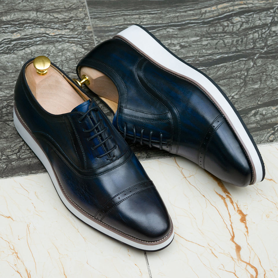 Premium Quality Italian Style Casual Sport Leather Men's Shoes Lace-Up Comfortable Walking Style Dress Handmade Shoes Nice Blue