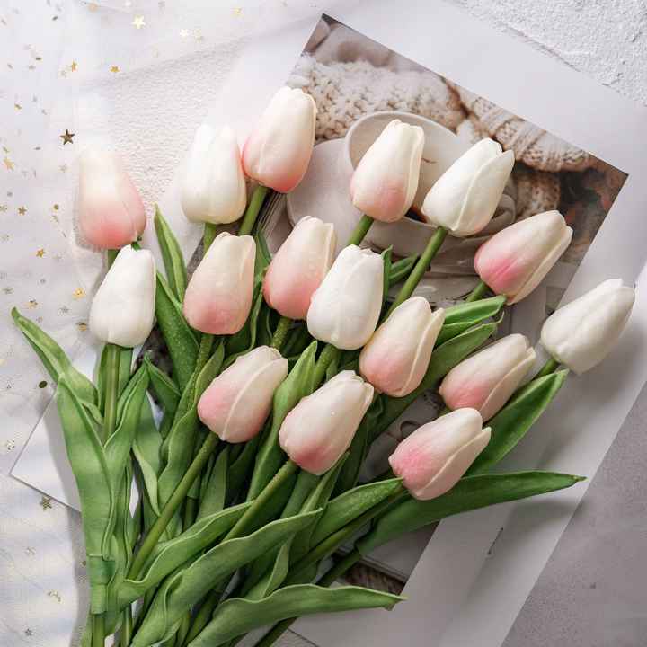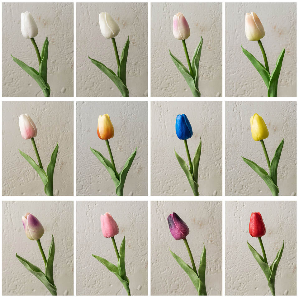 Steli di Tulipani Artificiali Premium in PU Effetto Reale, Mini Tulipani Bianchi Pallido per Bouquet da Matrimonio, Ringraziamento, Pasqua e Decorazioni per la Casa