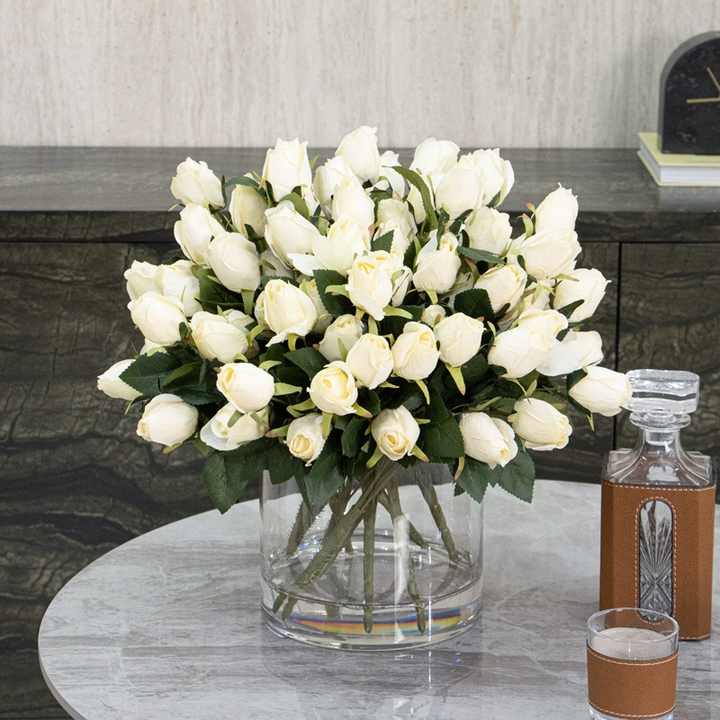 Premium realistico Bouquet di Rose artificiali con vaso di vetro per soggiorno e matrimonio di lusso decorazioni per la casa