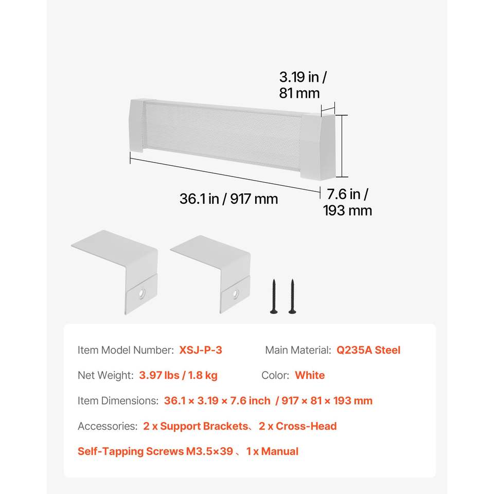Copertura Frontale per Radiatore Elettrico a Battiscopa Serie Premium da 3 piedi, Base in Acciaio Resistente per Miglioramenti Domestici