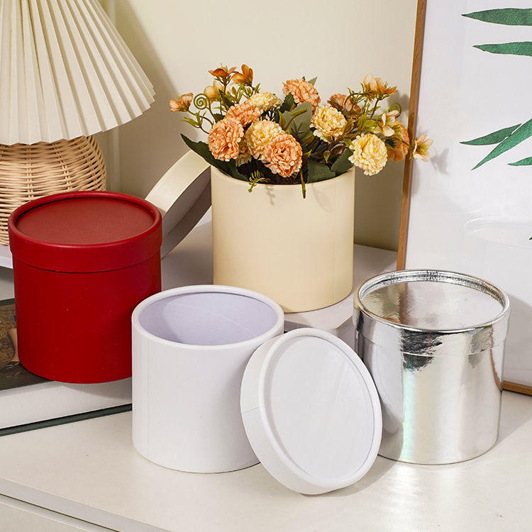 Scatola Rotonda Premium Semplice a Tubo Cilindrico in Carta Kraft con Stampa e Manico per Confezione Regalo di Rose e Fiori