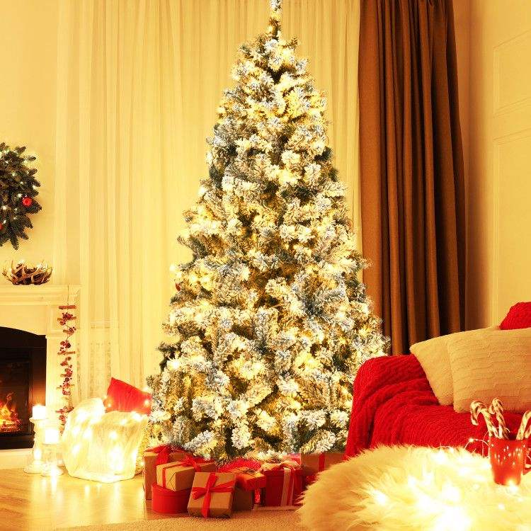 Albero di Natale Artificiale Premium Effetto Neve con Cerniere, Pre-Illuminato
