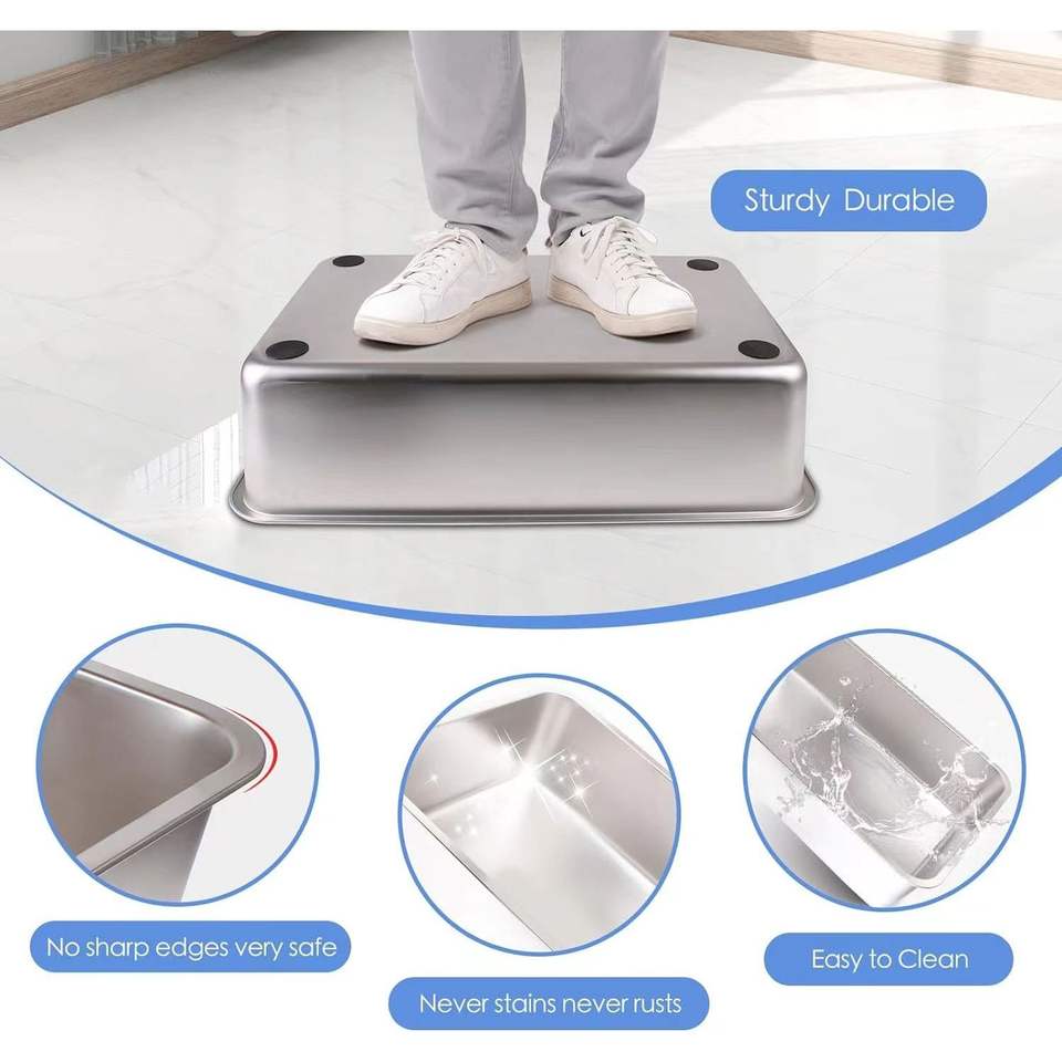 Lettiera per Gatti Premium in Acciaio Inox Color Kaki XL Design Chiuso con Bordi Alti Funzione Anti-Perdita Facile da Pulire con Paletta