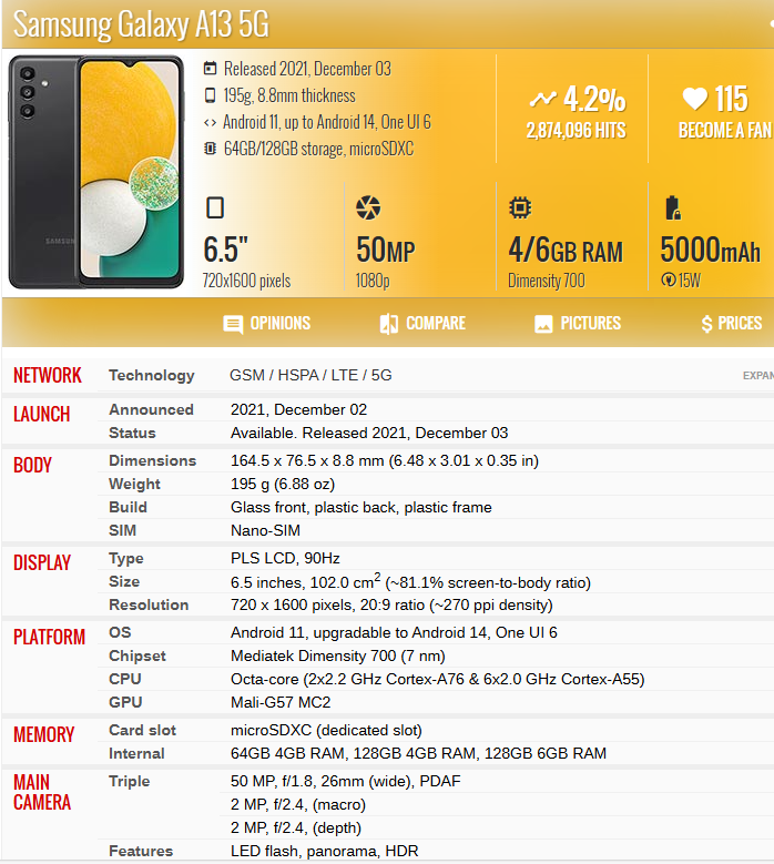 Telefoni Cellulari Usati Premium 128 GB Smartphone di Seconda Mano per Samsung A13 5G