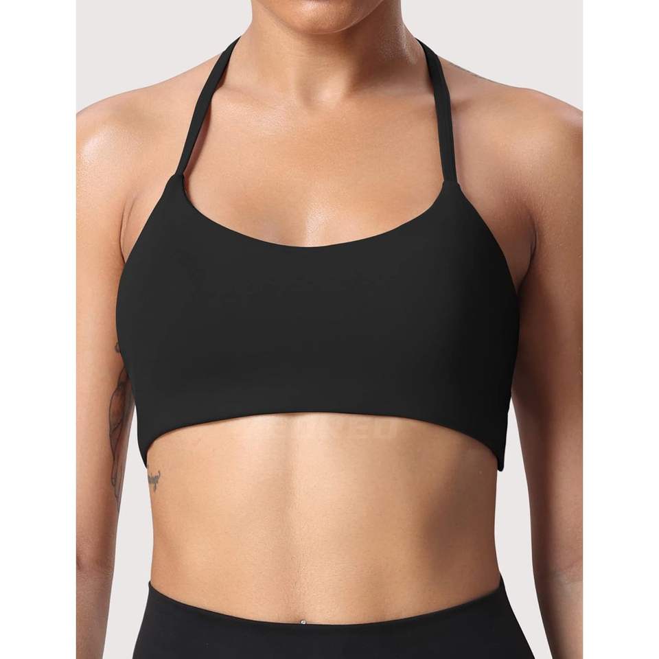 Premium Women's XS Sports Bra Halter Workout Crop Top with Strappy Cross Back Removable Padded Yoga Active Print Design