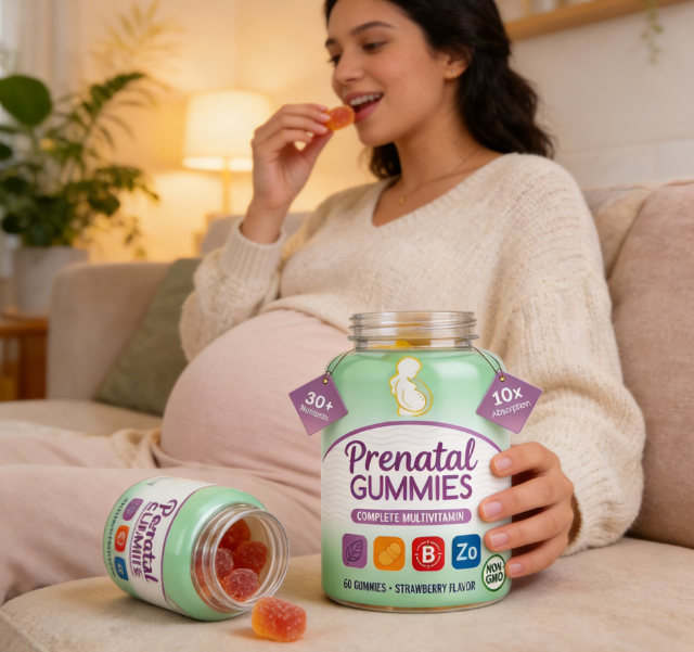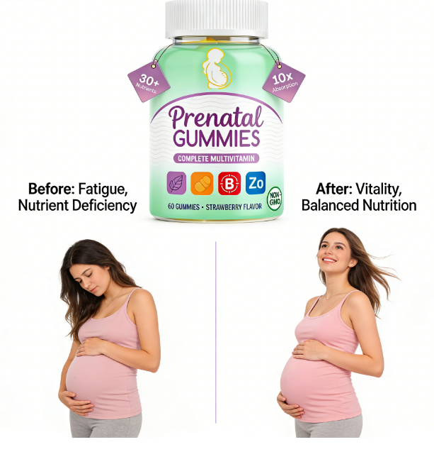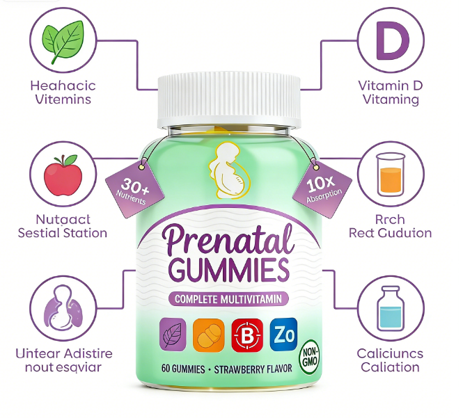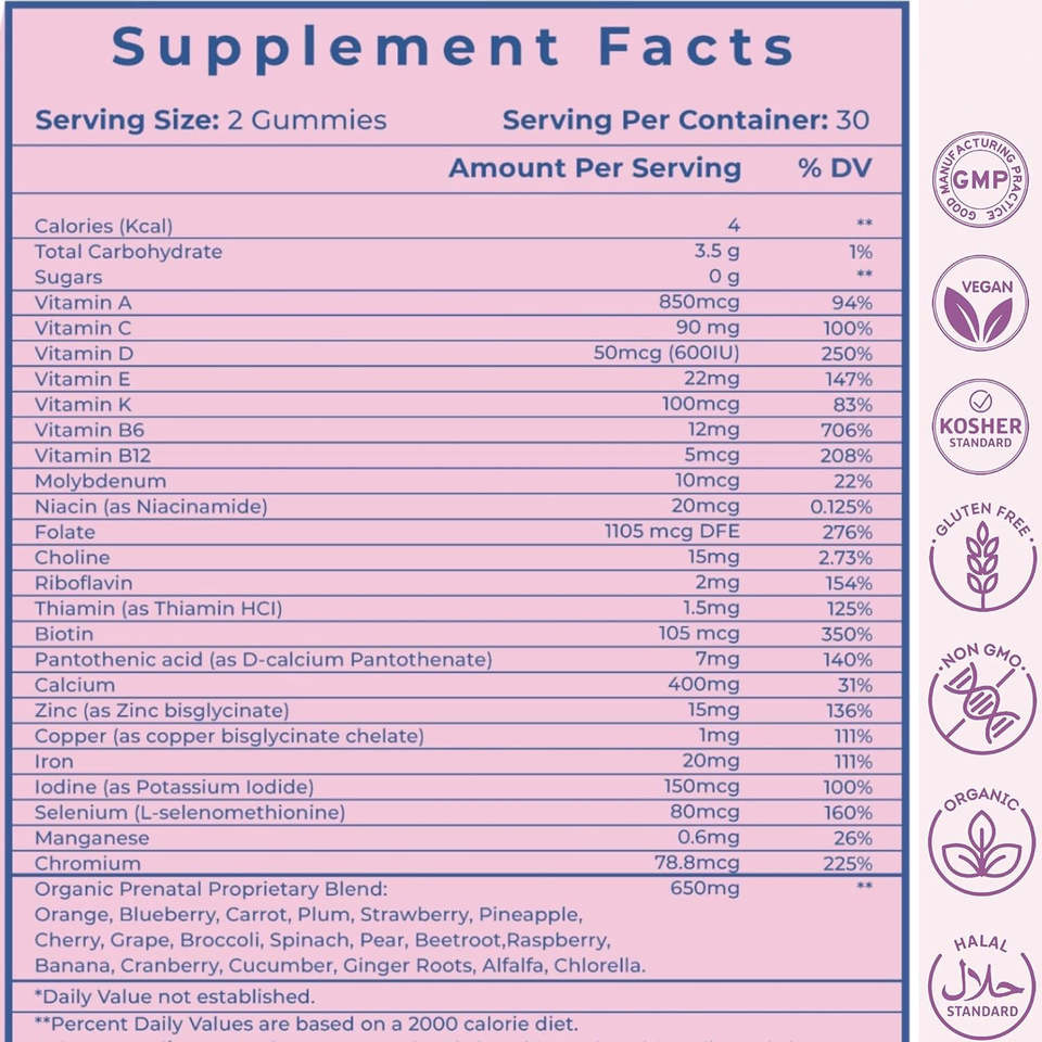 Gommose multivitaminiche prenatali | Oltre 30 Nutrienti | Assorbimento 10 volte superiore | Non-OGM | Fragola | 60 Pezzi