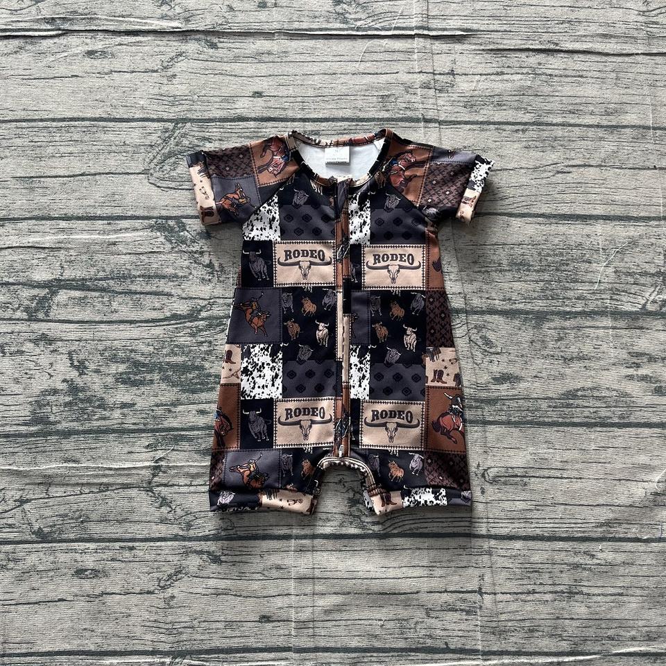 Preordine SR3545 Tutina a Maniche Corte per Neonati e Bambini, Stile Western Rodeo, Abbigliamento per Neonati e Bambini, Body con Cerniera per Neonati