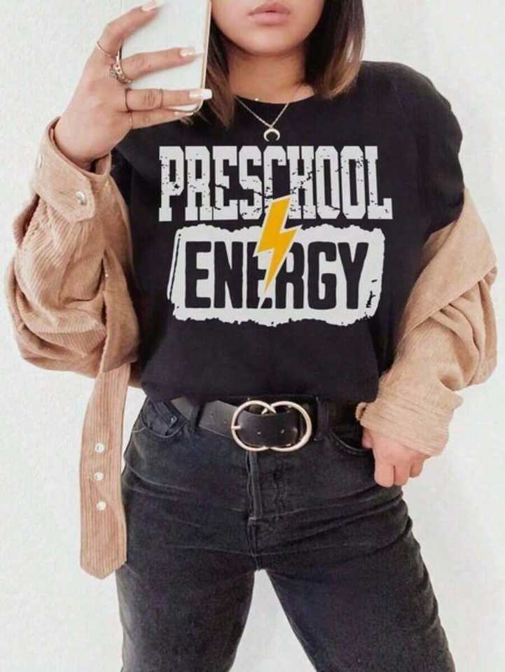 Preschool Energy T-Shirt Women's Short Sleeve 100% Cotton Oversized Round Neck Casual Graphic Tee Letter Print Jersey Fabric