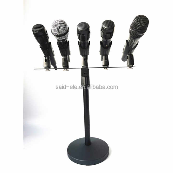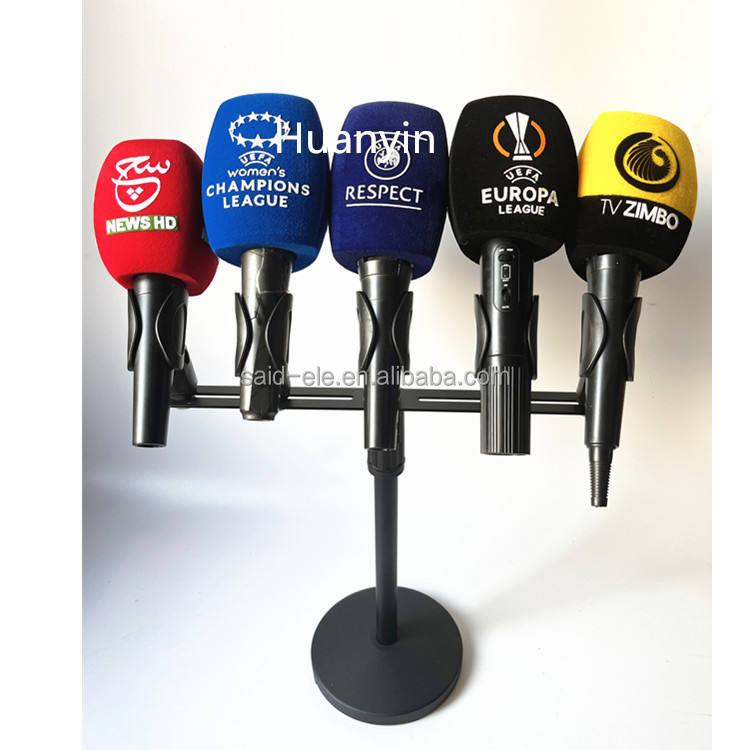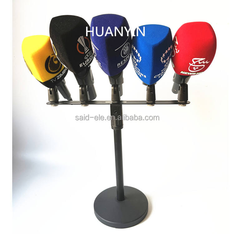 Press News Conference Microphone Holder Stand Metal Large Mic Holder 5 in 1 Tv Channel Foam Windscreen