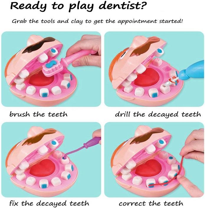 Pretend Play Set Role Play Toys Kids Little Dentist Doctor Drill and Fill Toys Play Dough Dentist Set