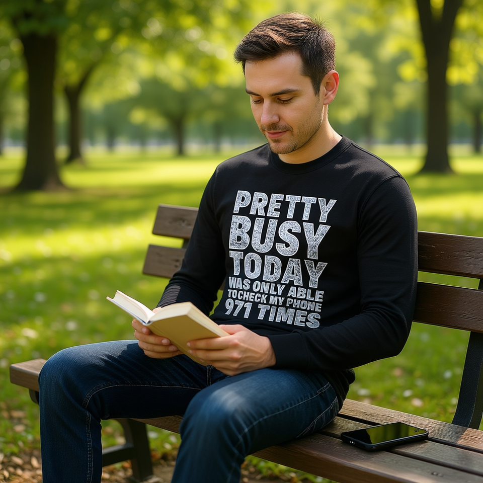 T-shirt a maniche lunghe Pretty Busy Today, maglietta con umorismo digitale sul disintossicante