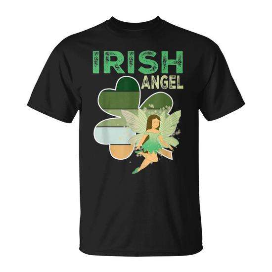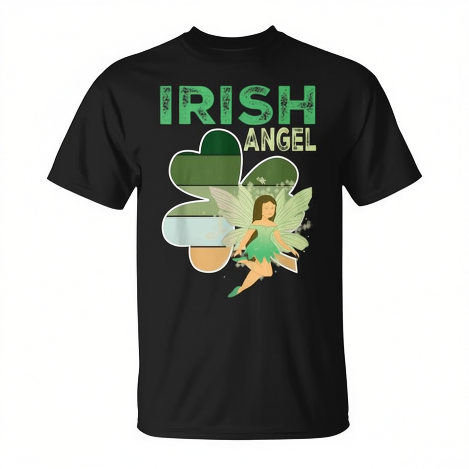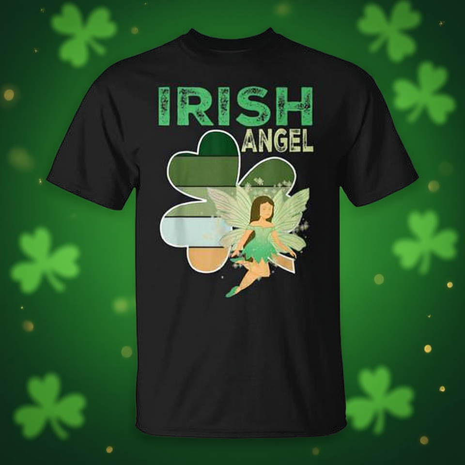 Graziosa Maglietta Promozionale con Trifoglio Irlandese e Angelo Portafortuna per la Festa di San Patrizio