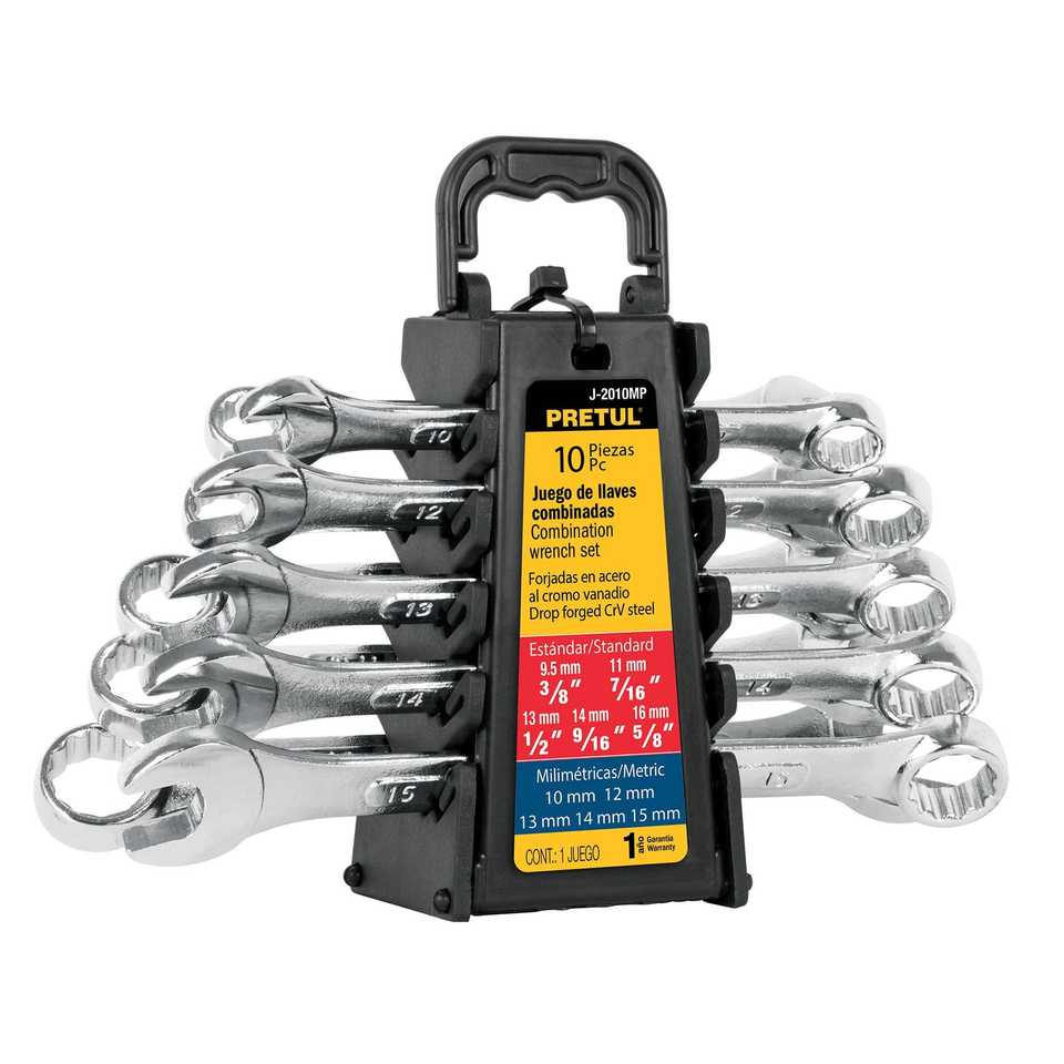 Pretul J-2010MP 10-Piece Combination Wrench Set Chrome Finish DIY Hand Tools for Industrial Use Open End Wrenches Standard 17mm