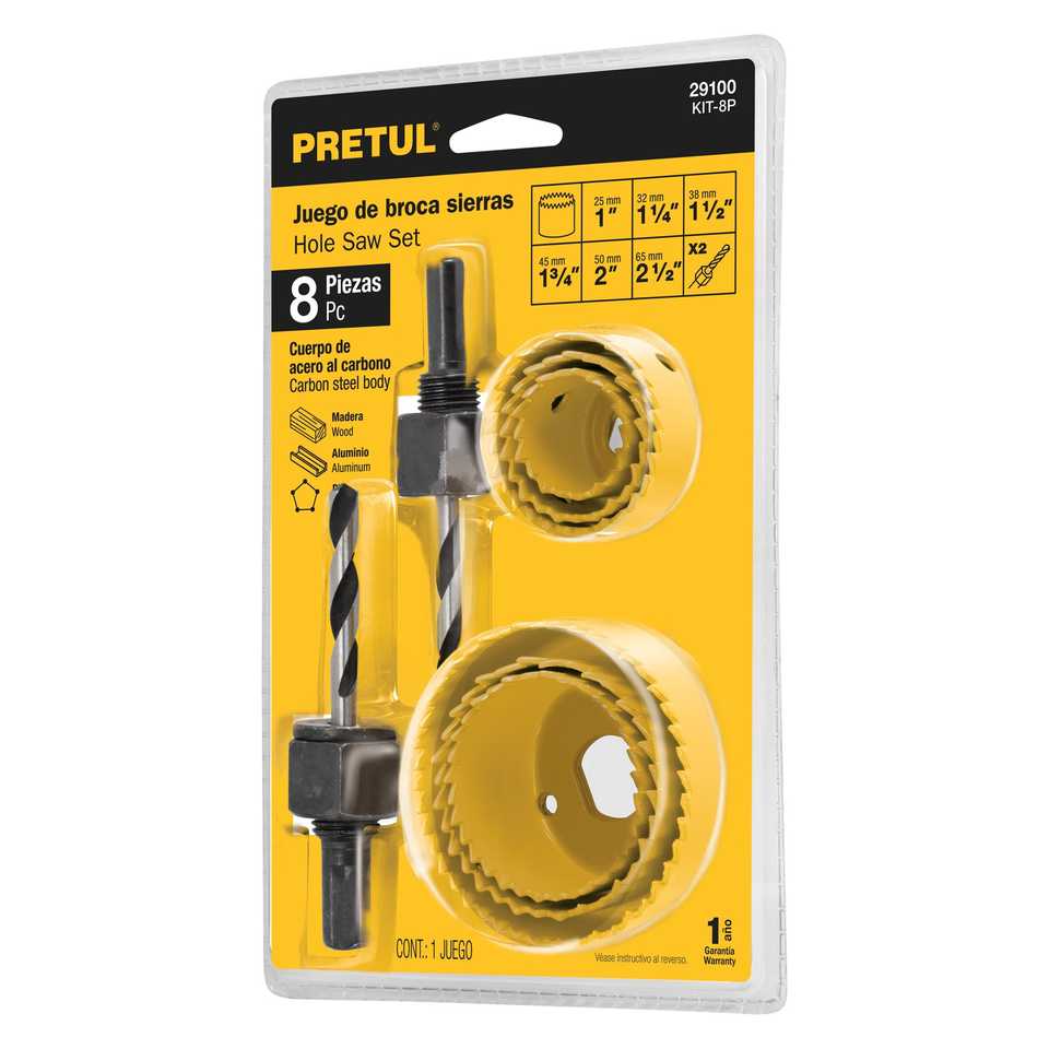 Set di KIT-8P Pretul di 7 punte da trapano in acciaio al carbonio e 1 Kit per seghe a mandrina