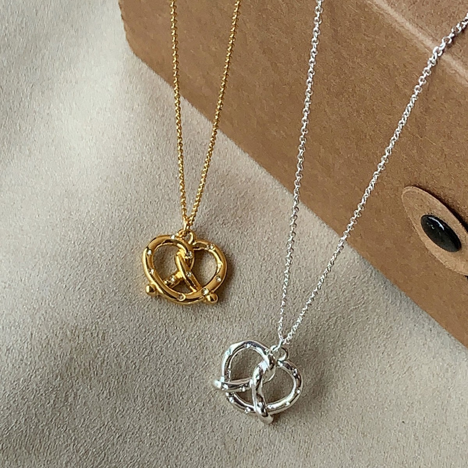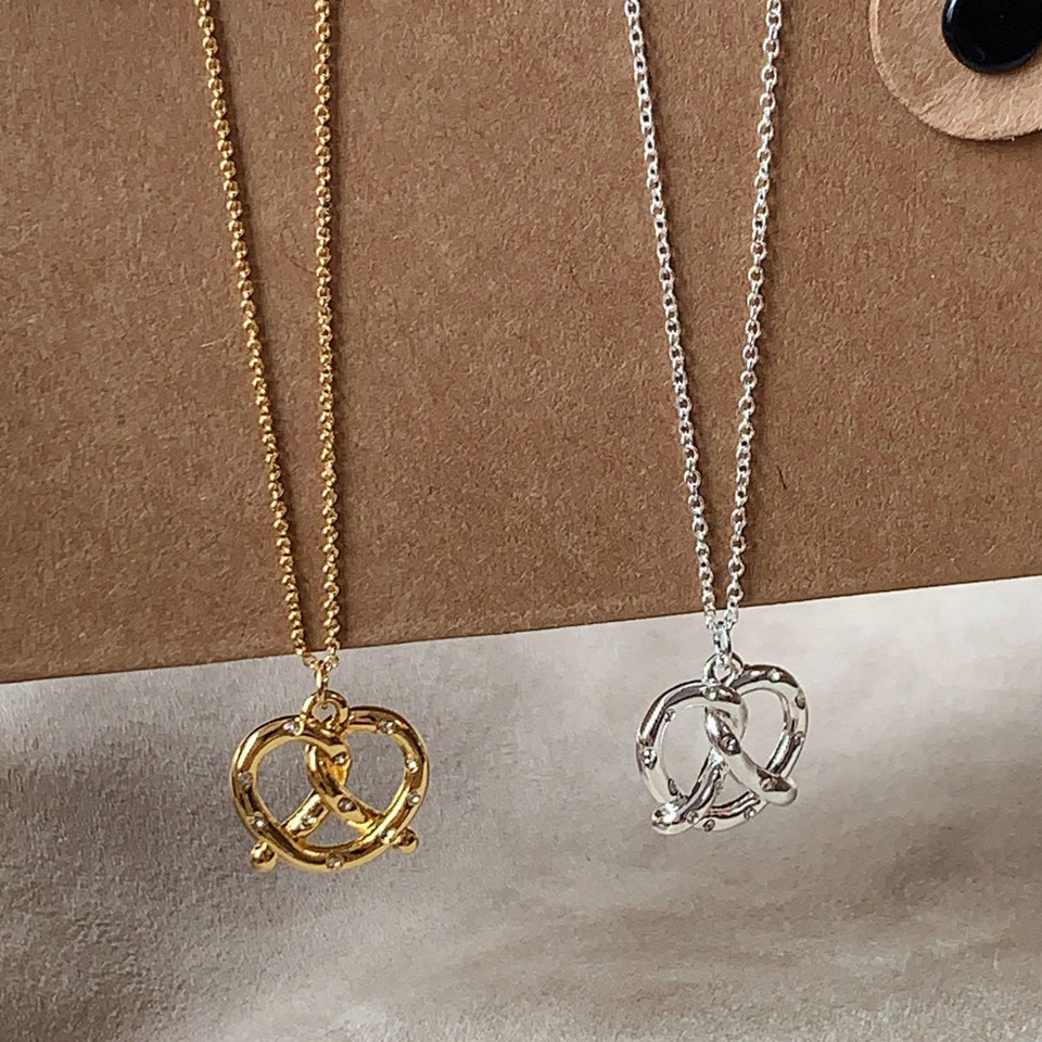 Collana di pane Pretzel con cuore strass accento in stile maglione catena in acciaio inox personalizzabile gioielli stravaganti