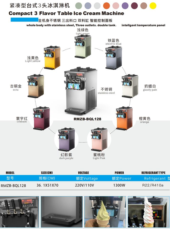 RMZB-BQL128 Macchina per gelato compatta da tavolo a 3 gusti