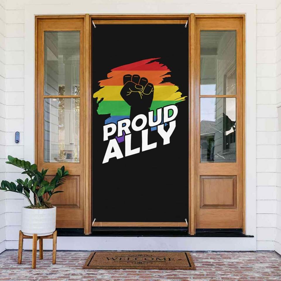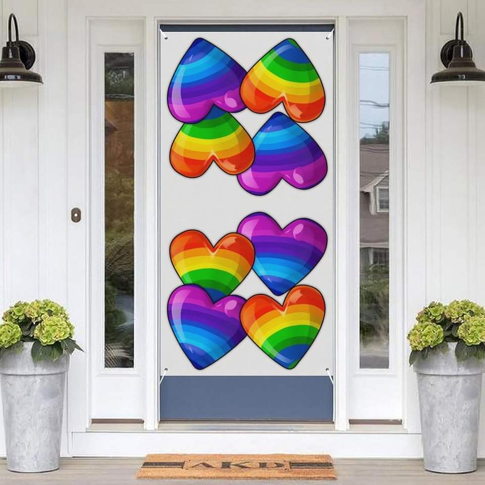 Copertura per Porta con Bandiera dell'Orgoglio, 'Ogni Uno è Benvenuto Qui', Striscione per la Giornata dell'Orgoglio Gay, Parata Mensile, Bandiere Arcobaleno Personalizzabili
