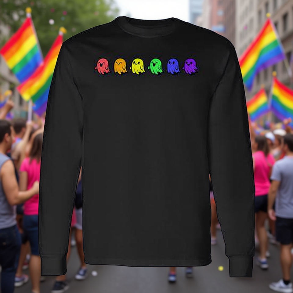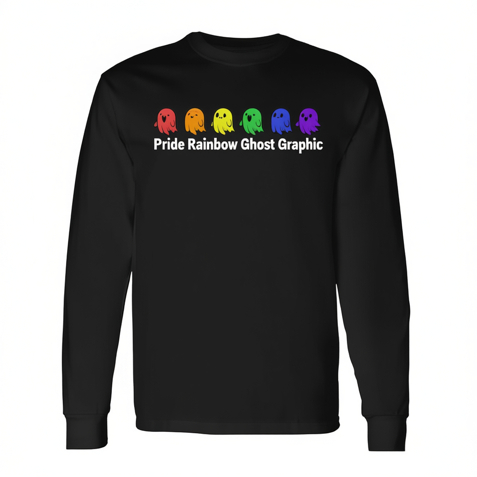 T-shirt promozionale a maniche lunghe con grafica Pride Rainbow Ghost