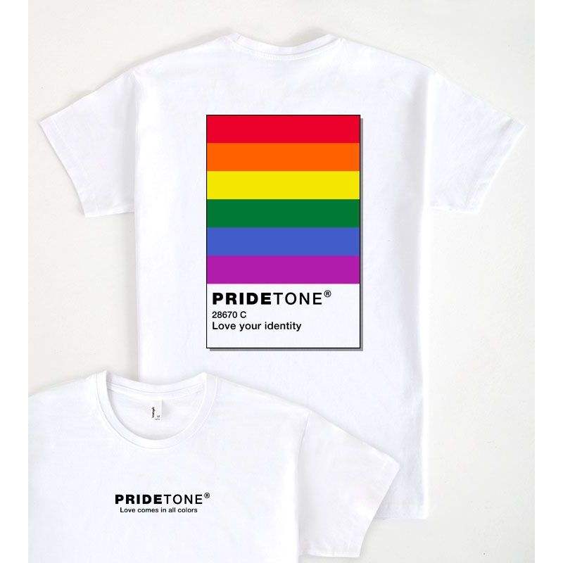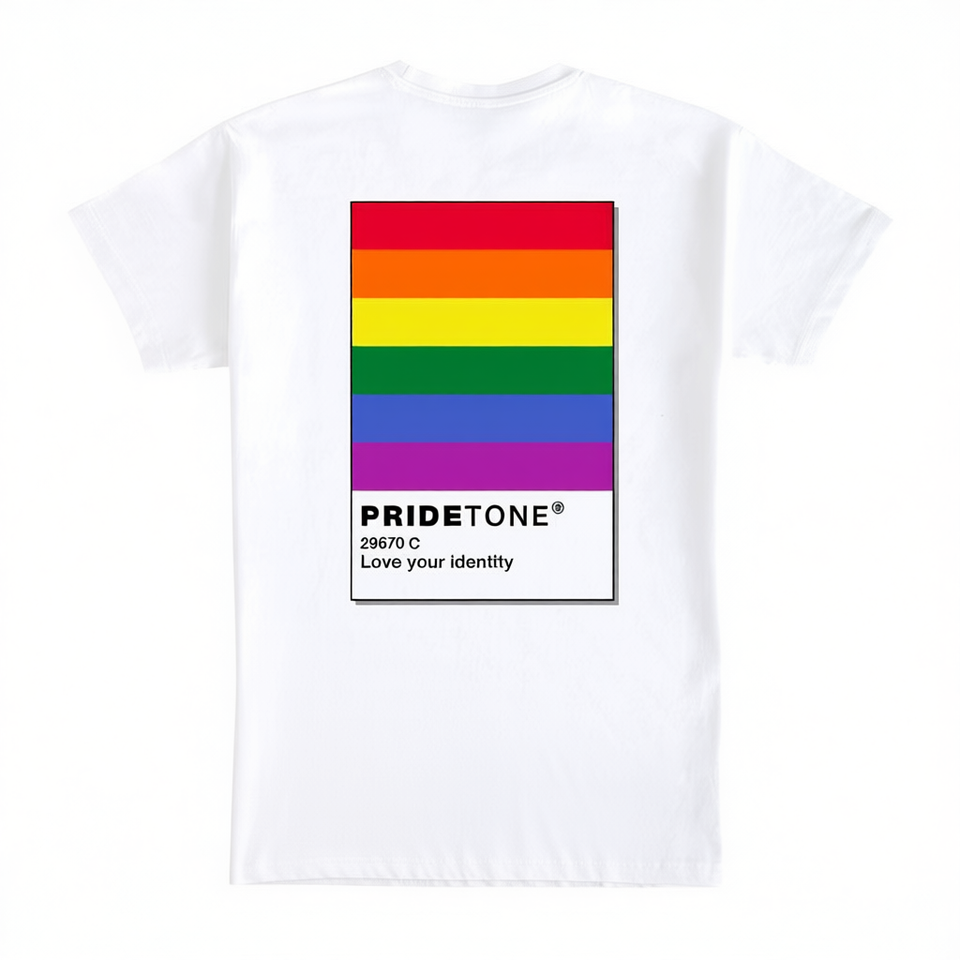 T-Shirt Pridetone Pride Bianca con Stampa Arcobaleno - Abbigliamento Promozionale 'Amo la Tua Identità'