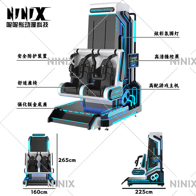 Simulatore di doppio sedile Skyfall primordiale immergiti in una Drop Experience virtuale a tema centri di parchi di divertimenti VR