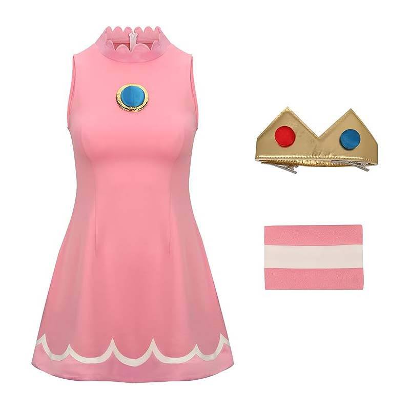 Costume da Principessa Peach per Cosplay, Abito da Tennis da Principessa per Donna con Corona DISP-021