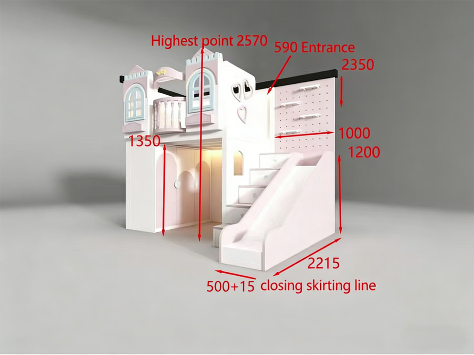 Letto a Castello in Legno Massello Personalizzato per 2 Bambini con Scivolo, Scale con Cassetti e Strutture per il Gioco per Camera da Letto
