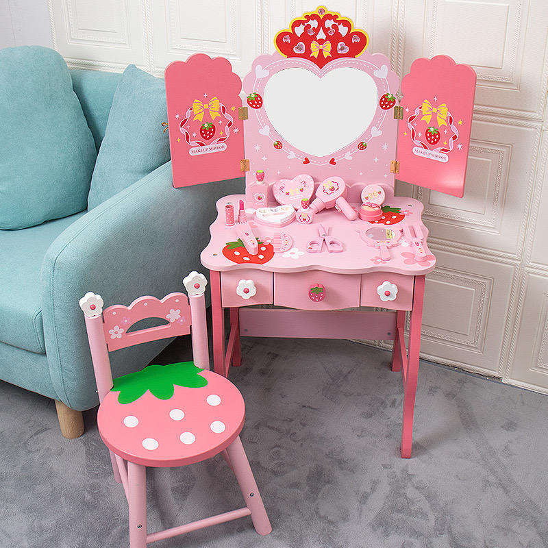 Set Gioco di Ruolo e Travestimento per Bambini: Tavolino da Toeletta in Legno a Tema Principessa con Scatola Portagioie - Divertimento Assicurato!