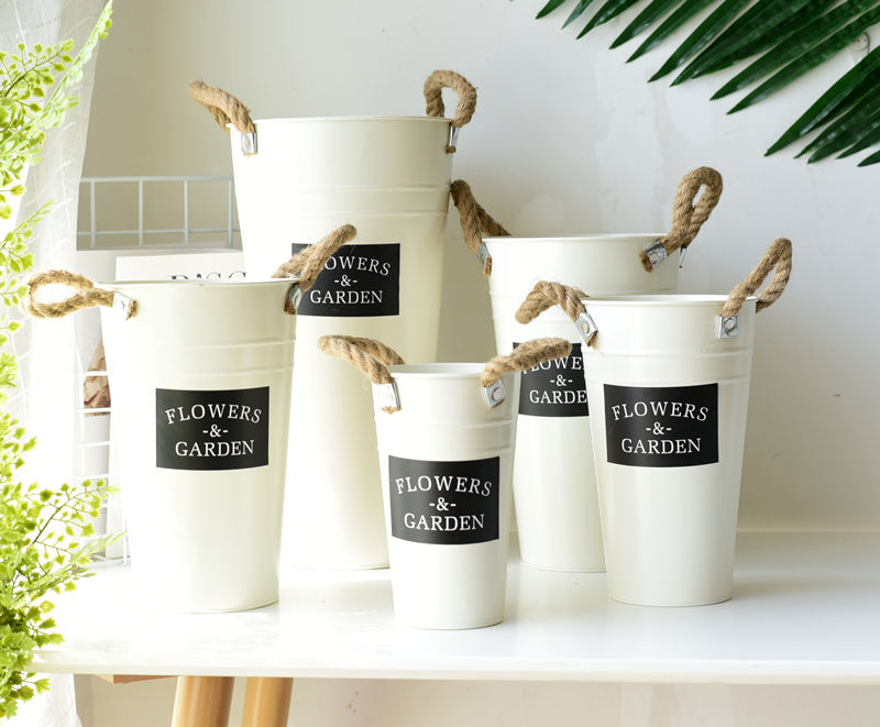 Print White Big Tall Flower Arrangement Galvanized Bucket Metal Tall Vase for Flower Arrangements Flower Shop Supplies