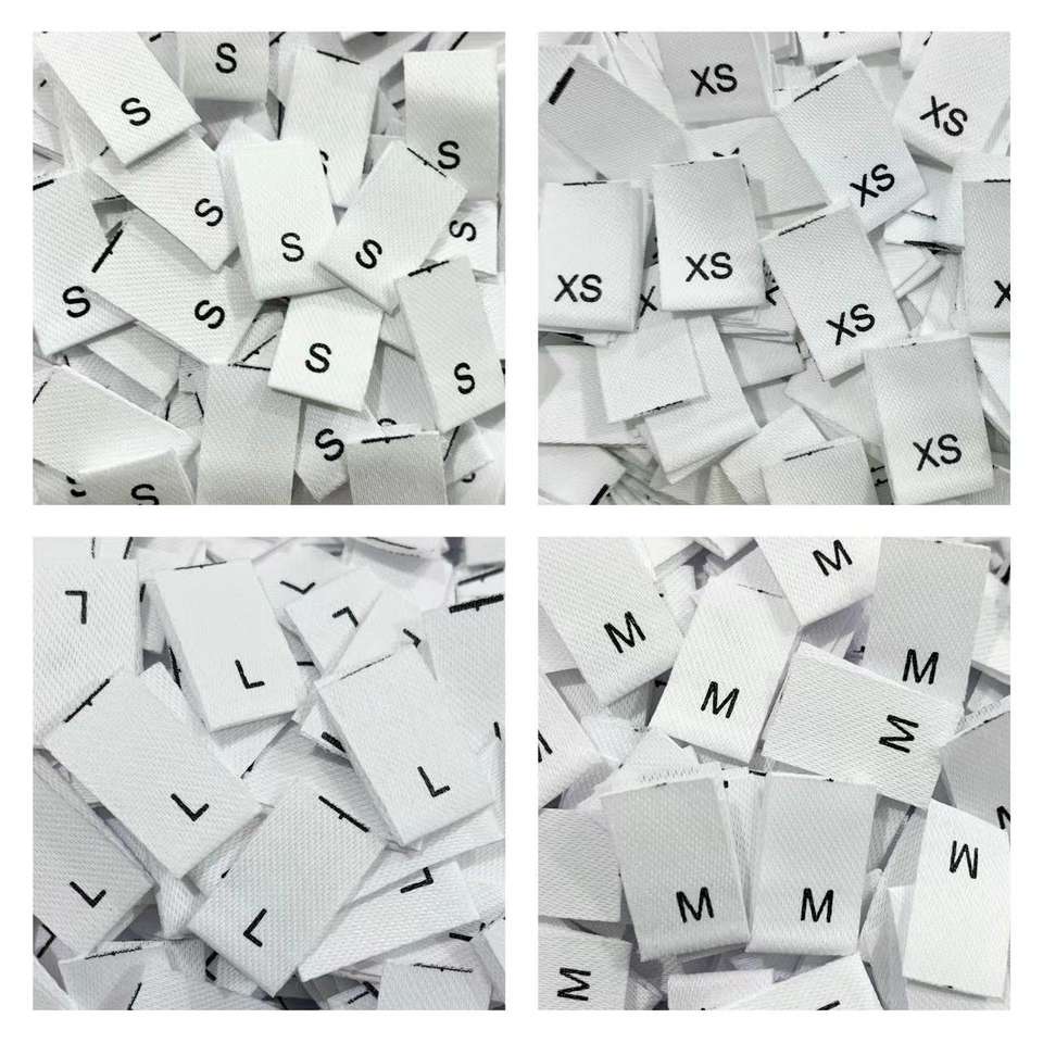 Materiale in poliestere: Realizzati in 100% poliestere, questi etichette offrono durata e resistenza al lavaggio, garantendo un utilizzo a lungo termine nei capi di abbigliamento.