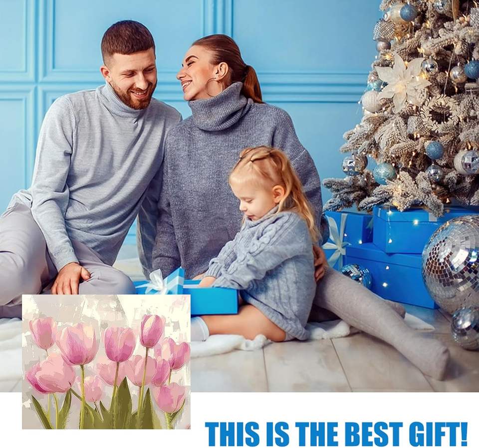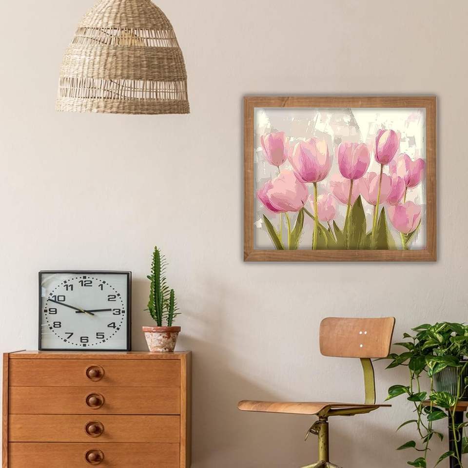 Set di Dipinti a Olio Stampati, Motivo Tulipani Rosa, Fiori Dipinti ad Acrilico, Decorazione per Camera da Letto, Quadro Decorativo per Casa