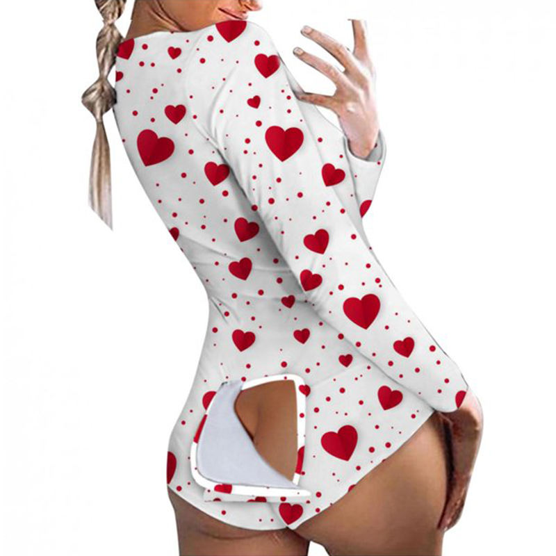 Pigiama con patta sul cavallo aperto stampato per adulti tutina con mezzo bottone personalizzata per pigiama da donna