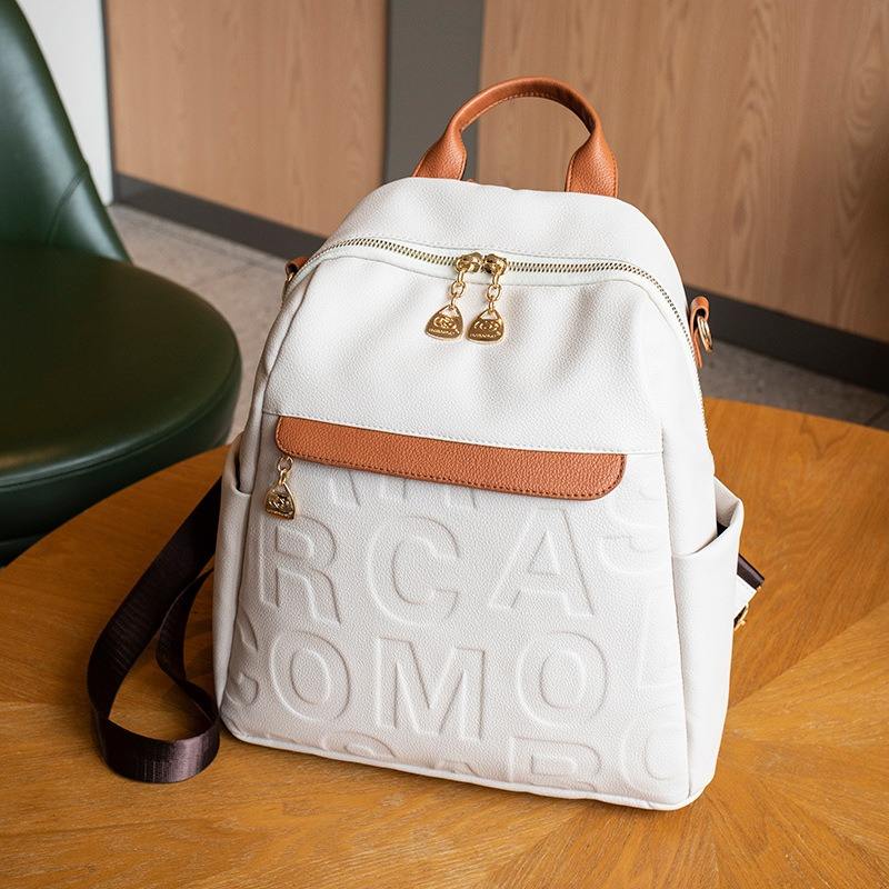 Printed logo Pu Leather Bagpack Women Purse Waterproof Travel Backpack Carry on