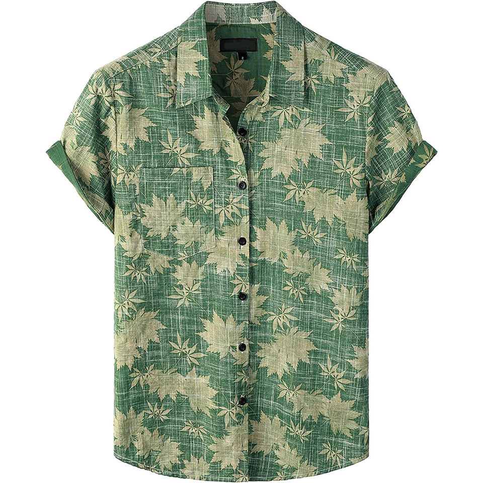 Camicia Floreale da Uomo in Lino 100% Cotone Taglia USA Personalizzata con Bottoni Completi Stile Hawaiano