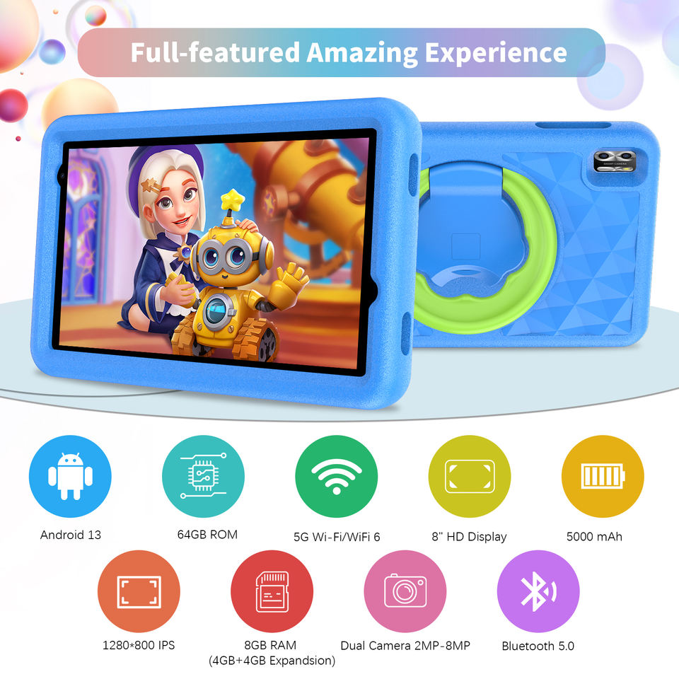 Pritom OEM 8 "bambini Tablet Pc 8 + 64GB memoria Quad Core 1.8Ghz con custodia in gomma Standard da 8 pollici Tablet per bambini