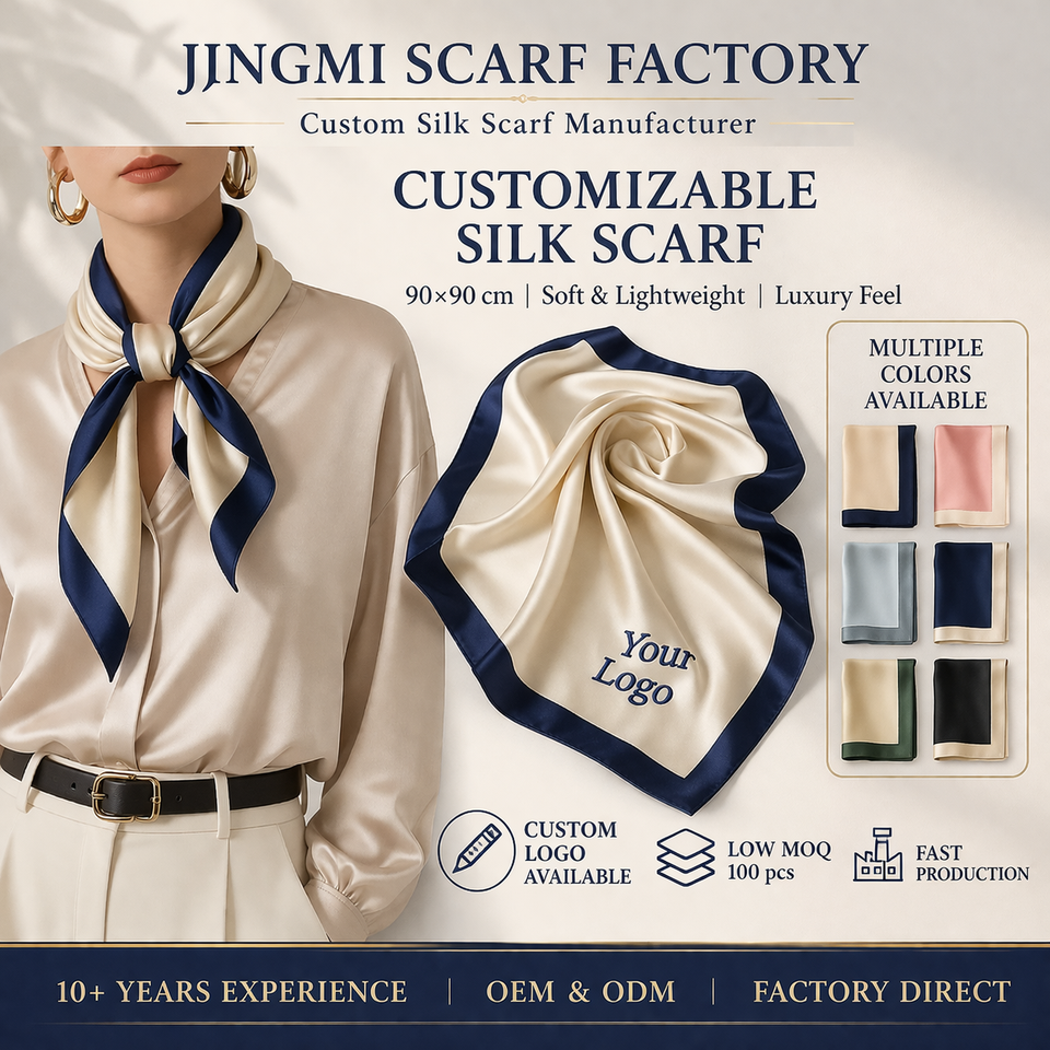 Scialle da Donna in Chiffon di Seta Stampato con Logo Ricamato Personalizzato 90x90cm Nuovo Design Hijab Sciarpa in Raso di Seta