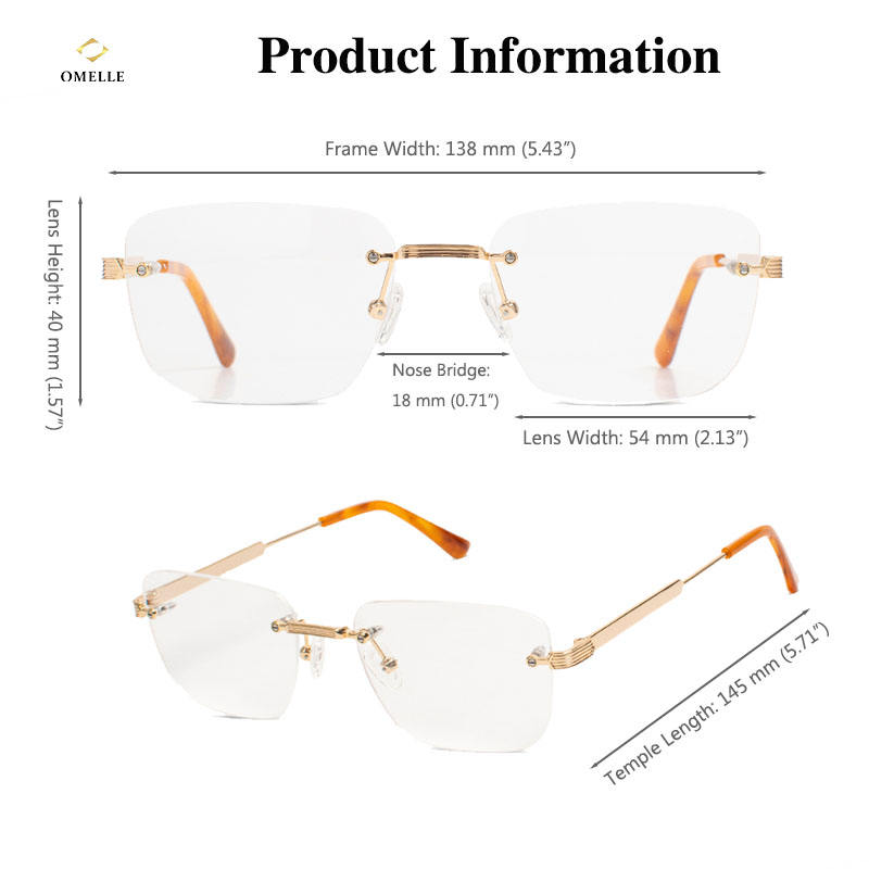 Occhiali da Vista da Uomo Senza Montatura Piccoli Stile Retrò con Lenti Ottiche da Lettura Montatura in Metallo Dorato Vintage CE Private Label
