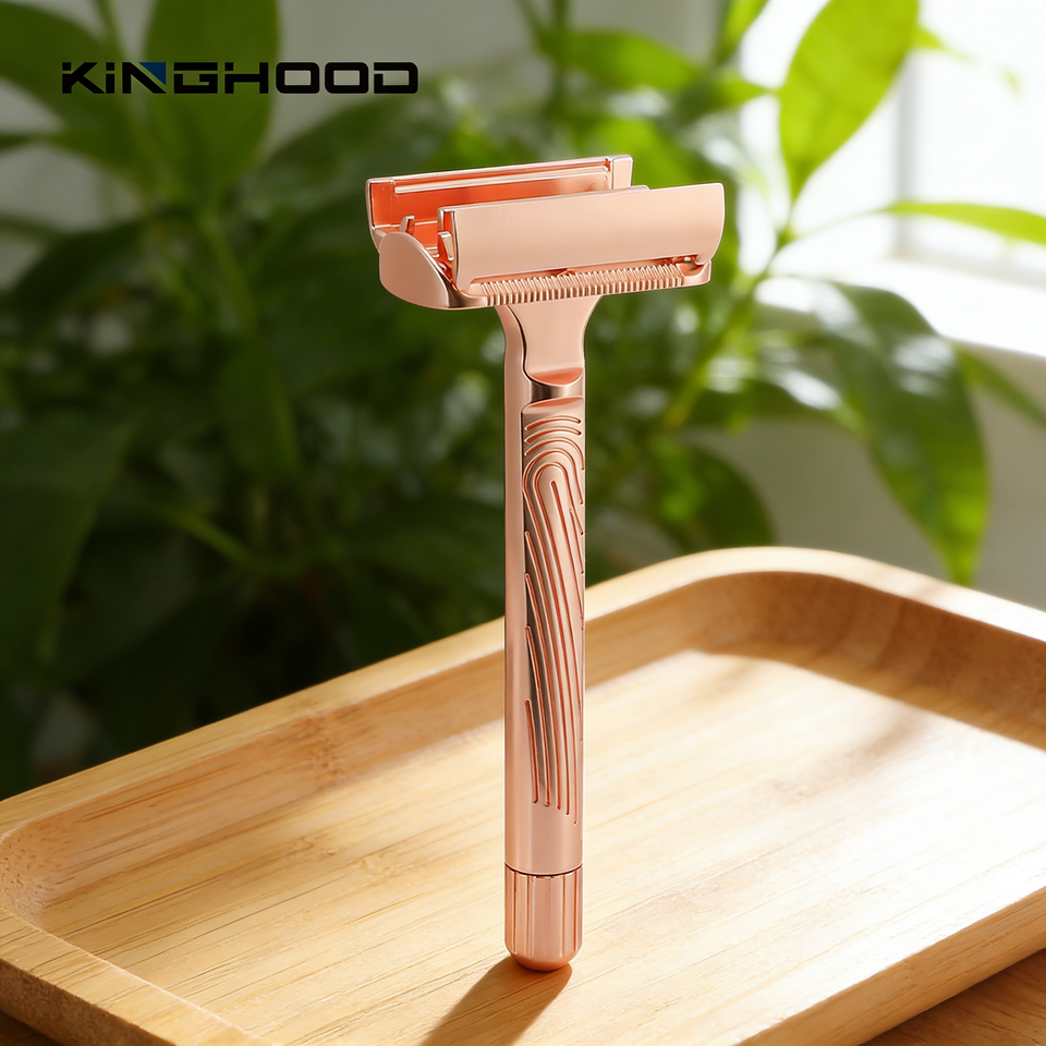 Rasoio di Sicurezza a Doppio Filo in Lega di Zinco, Personalizzabile con Logo, Ecologico, Riutilizzabile, Zero Rifiuti, Apertura a Farfalla, Produzione OEM