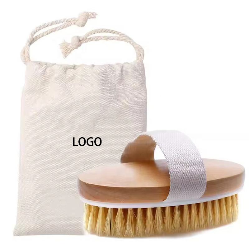 Private Label Dry Skin Wooden Bath Brush Natural Bamboo Sisal Bristle Body Brush for Cellulite Exfoliating