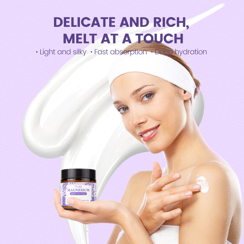Crema Corpo al Magnesio e Lavanda Biologica ad Assorbimento Rapido Non Grassa Etichetta Privata Crema Lenitiva per il Sonno e i Muscoli