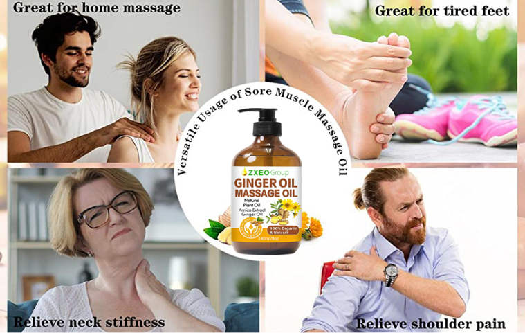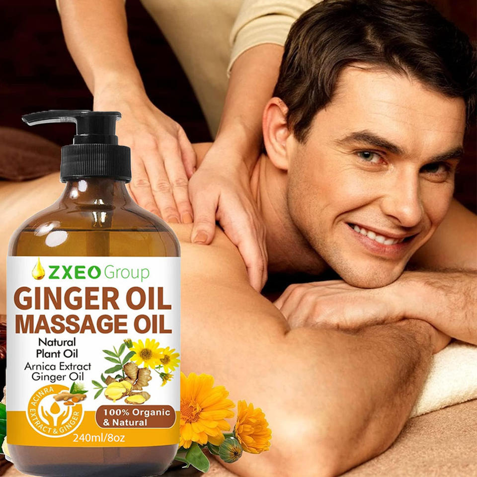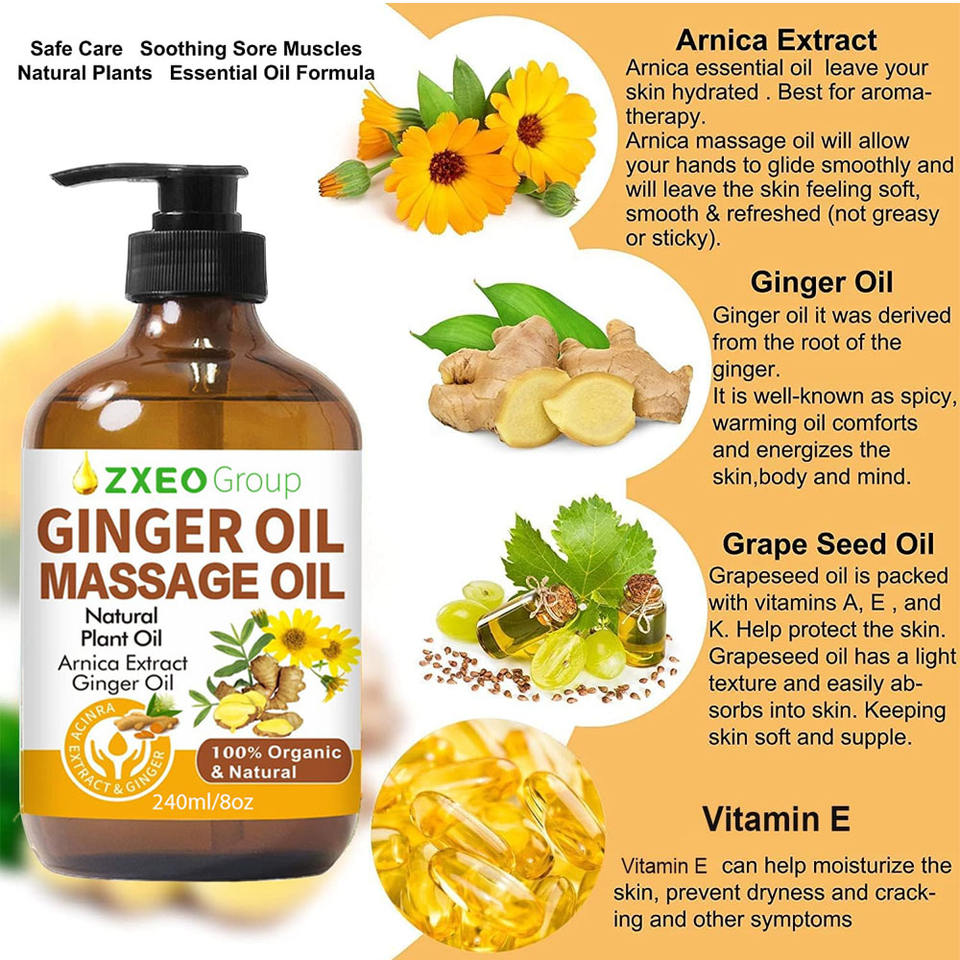 Olio massaggio allo zenzero etichetta privata 8oz per drenaggio linfatico, olio di zenzero naturale per la pelle, dolori muscolari, riscaldamento e relax