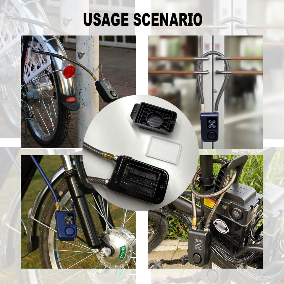 Lucchetto per Bicicletta Impermeabile IP44 con Allarme 110db, Cavo in Acciaio ABS e Rame, Combinazione Antifurto per Moto e Biciclette