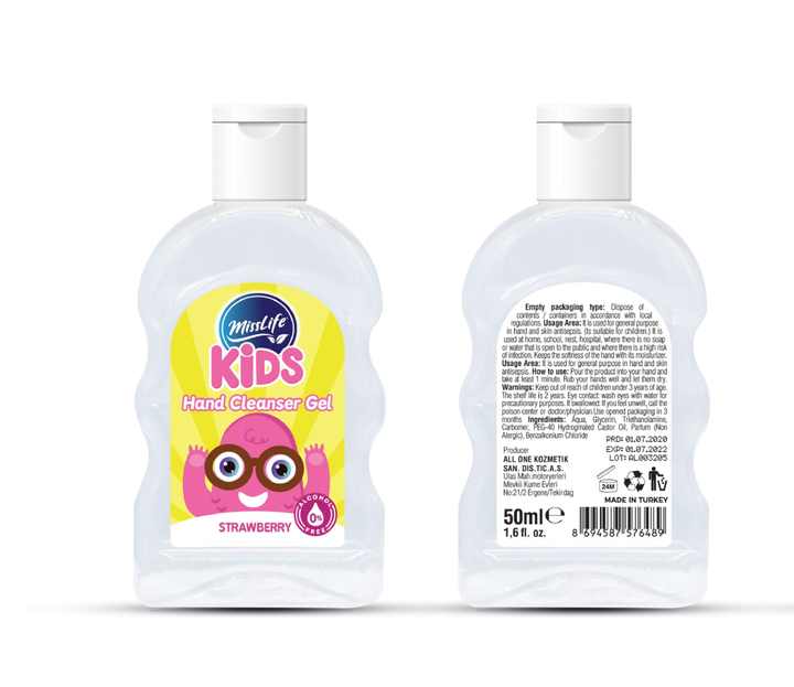 Private Label Kids Hand Sanitizer Gel 50ml Turkey Made Alcohol-Free Strawberry Flavor Health Care Accessory Plastic Material