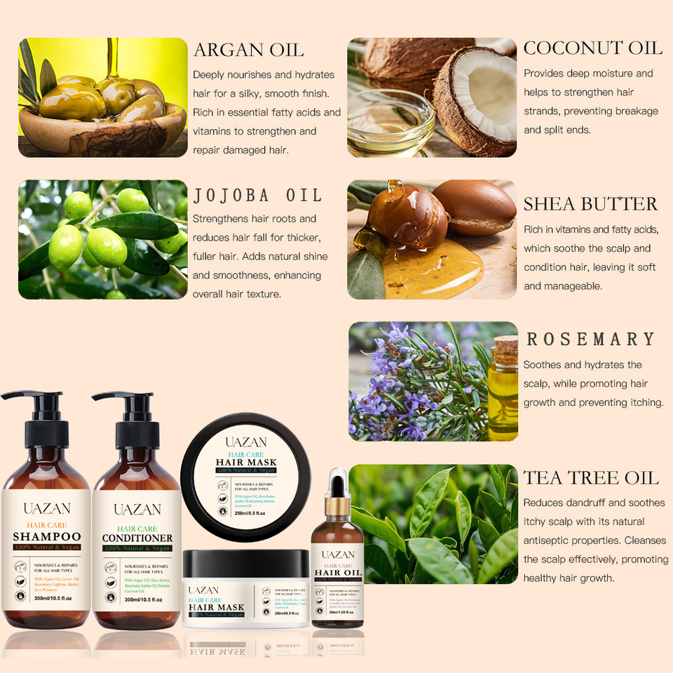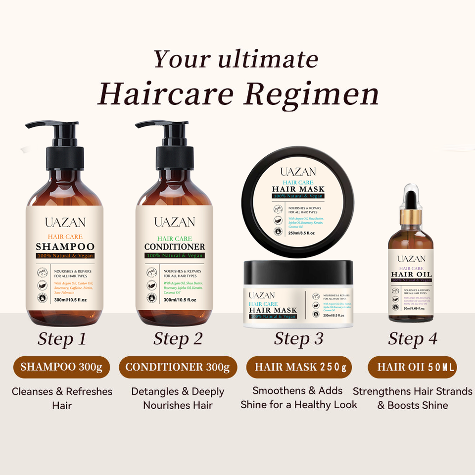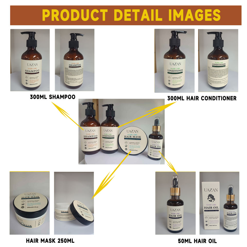 Articolo:shampoo 300ML, balsamo 300ML, maschera per capelli 250ML e olio per capelli 50ML