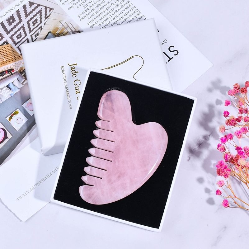 Massaggiatore pettine Gua Sha quarzo rosa a forma di cuore