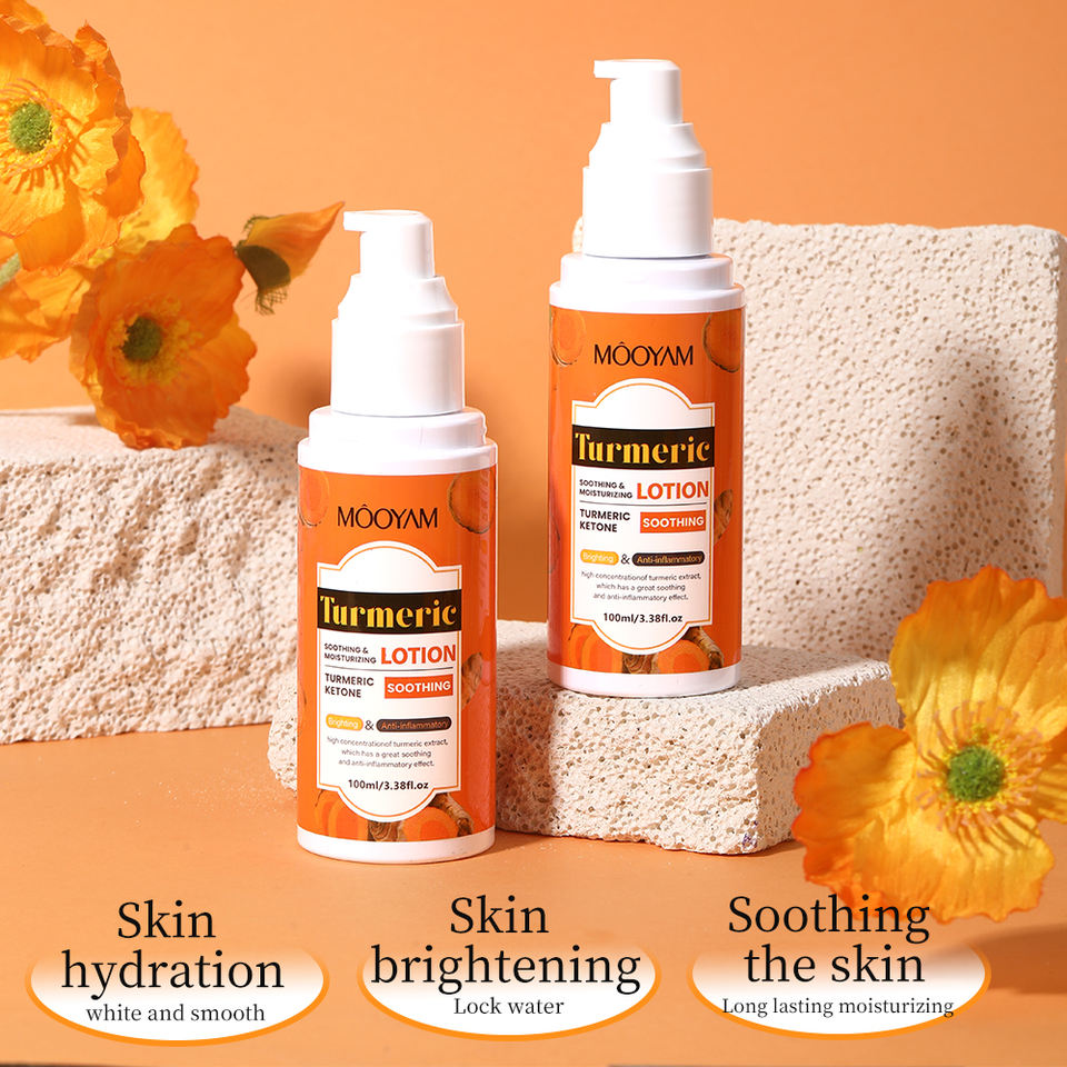 Lozione lenitiva alla curcuma Private Label 100ml per l'idratazione antinfiammatoria della pelle sensibile e incline all'acne con estratti naturali