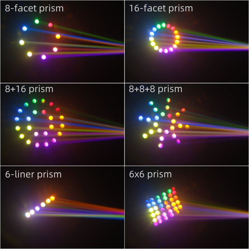 6 tipi di prismi: prisma (8, 16, 8 + 8 + 8, 8 + 16) e 6-liner, prisma 6x6