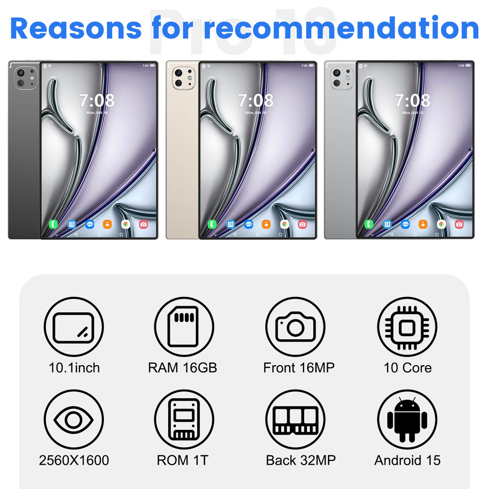 Tablet Android Pro 13 con Display da 10.1 Pollici, Snapdragon 8 Gen3, 16GB RAM, 1TB ROM, Batteria da 10000mAh, 5G LTE e GPS