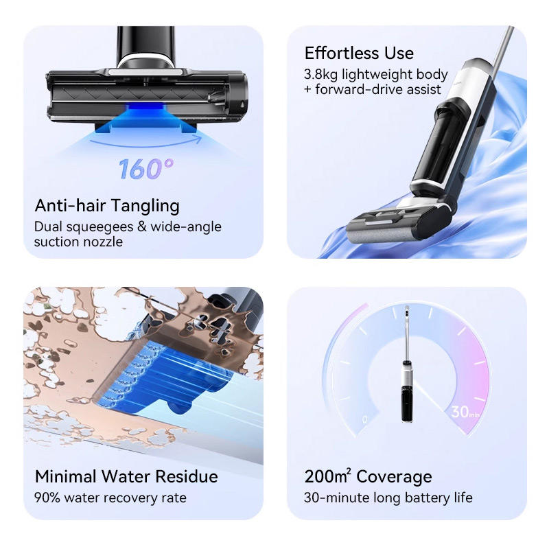 Aspirapolvere Lavapavimenti Portatile Senza Fili Proclean di Alta Qualità per Uso Domestico con Sterilizzazione ad Acqua Elettrolizzata e Funzione Wet & Dry