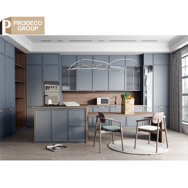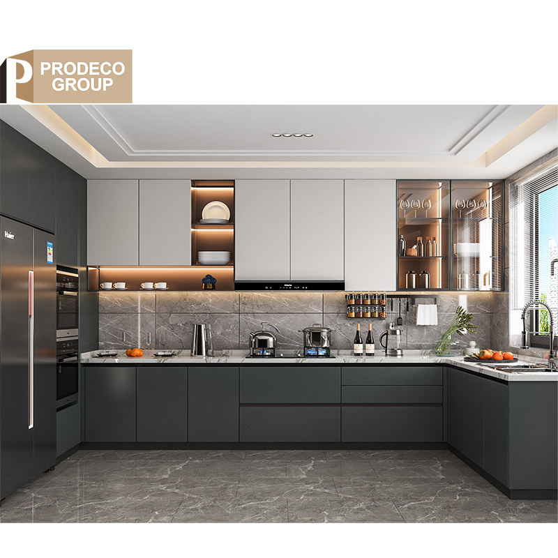 Prodeco Furniture Italian Small Stainless Flat Pack Kitchen with Cabinet Wall Mount Simple Modern Island Table for Household