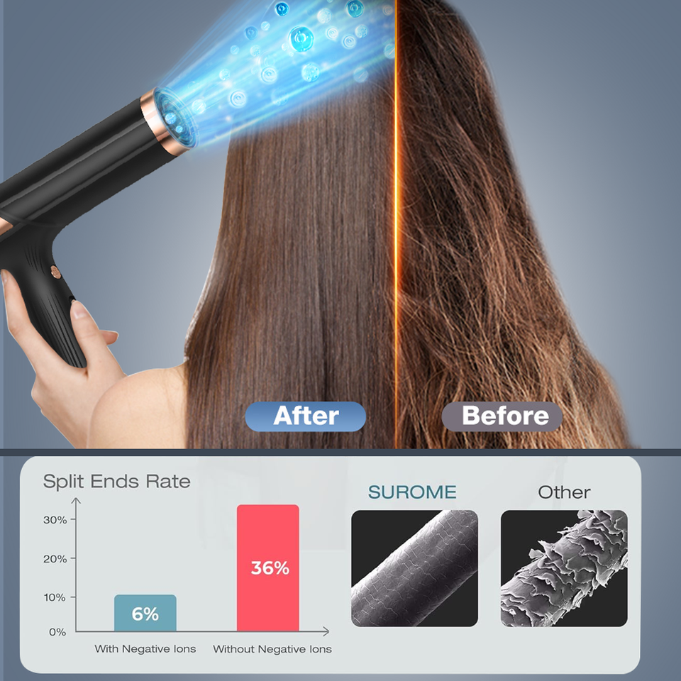 Funzione ionica negativa: La funzione ionica negativa aiuta a ridurre il frizz e l'elettricità statica, lasciando i capelli più lisci e gestibili dopo l'asciugatura.